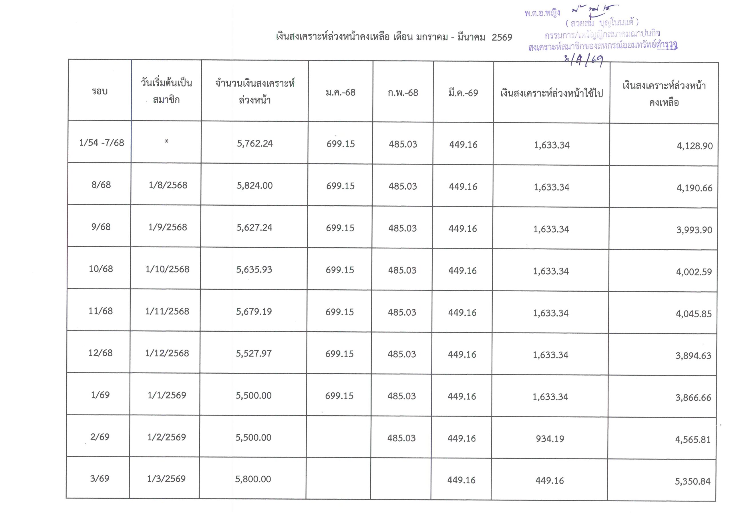 - เงินสงเคราะห์ล่วงหน้าคงเหลือ ประจำปี 2569