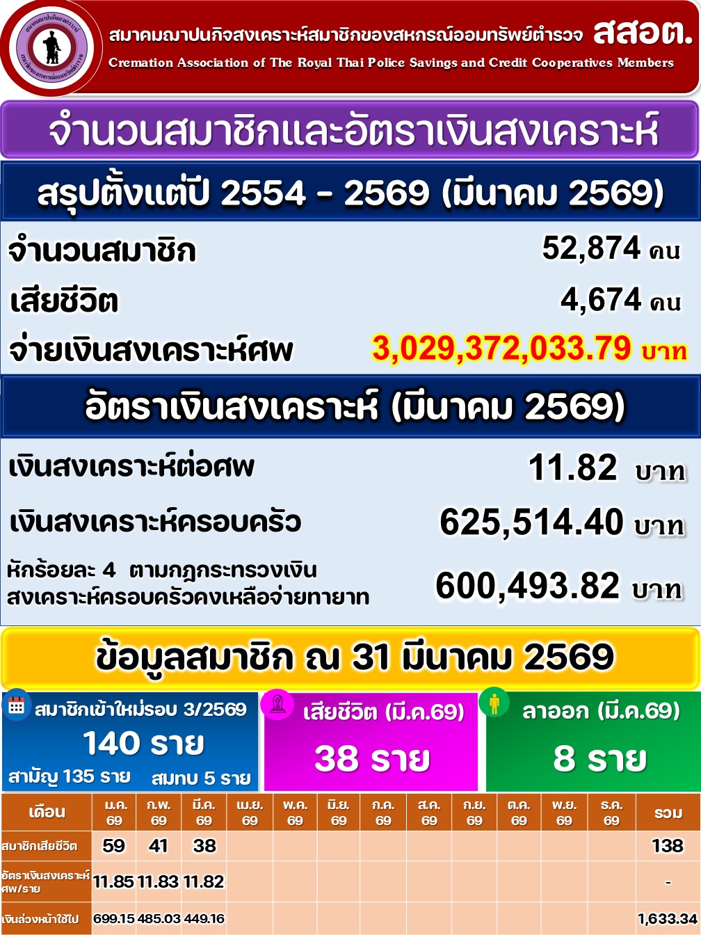 - อัตราเงินสงเคราะห์ครอบครัวสมาชิกเสียชีวิตปี 2569
