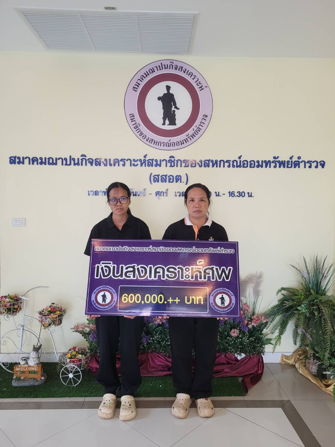 - วันที่ 22 ตุลาคม 2567 พ.ต.ท.ดร.ศุภมงคล ถนอมนิ่ม กรรมการ/ผู้ช่วยเลขานุการสมาคมฯ เป็นผู้แทนสมาคมฌาปนกิจสงเคราะห์สมาชิกของสหกรณ์ออมทรัพย์ตำรวจ (สสอต.) มอบเงินสงเคราะห์ครอบครัวให้กับทายาทของ ร.ต.ต.ธนาวุฒิ ทัดสอน สมาชิก สสอต. เลขที่ 019240 สมาชิกส่งเงินตรง (สมาคมรับโอนย้ายจาก ศปง.สอ.ตร.นครสวรรค์ จก.) ณ ที่ทำการ สสอต. อ.บางกรวย จ.นนทบุรี ขอแสดงความเสียใจกับครอบครัวสมาชิก ที่ท่านได้สูญเสียบุคคลอันเป็นที่รักไป สสอต. ยืนยันที่จะเป็นหลักความมั่นคงให้กับ สมาชิก ทุกท่าน